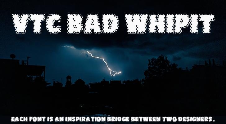 VTCBadWhipit Regular is a trademark of the V.T.C. Vigilante Typeface Corporation.Copyright (c) V.T.C. Vigilante Typeface Corporation, 2000. All rights reserved. DistroWare!! Spreadlike the Plague!!