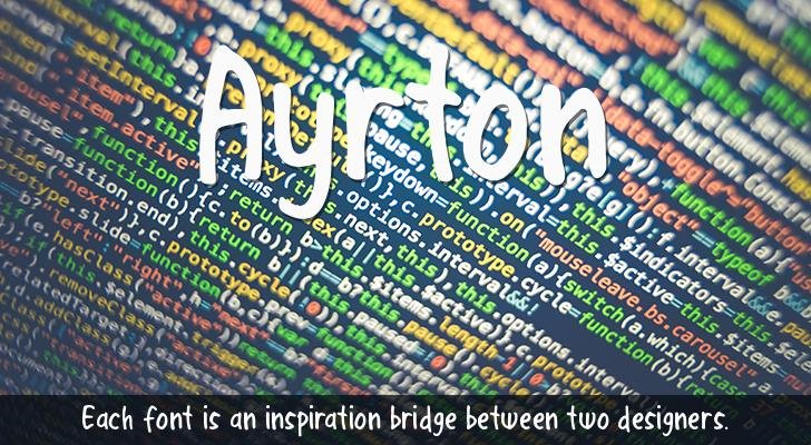 By installing or using this font you agree to the following: You may NOT redistribute this font without written permission. ---------------------------------------------------------------------------------- For Commercial Purchase : https://www.creativefabrica.com/product/ayrton/236344/ or email us to : gitayogiscr@gmail.com ---------------------------------------------------------------------------------- Paypal account for donation : gitayogiscr@gmail.com For more information please email to : gitayogiscr@gmail.com