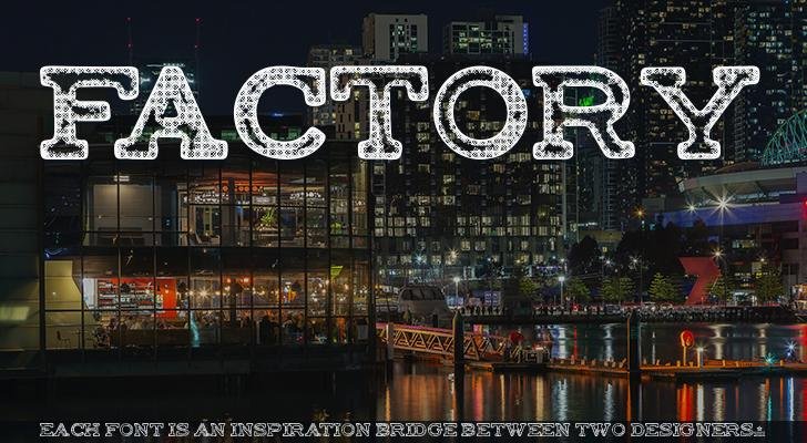 FACTORY Regular is a font by BiLLY ARGEL FONTS, designed by Billy Argel in 2016. FREE FOR PERSONAL USE COMMERCIAL LICENSES AVAILABLE @ BILLYARGEL.COM