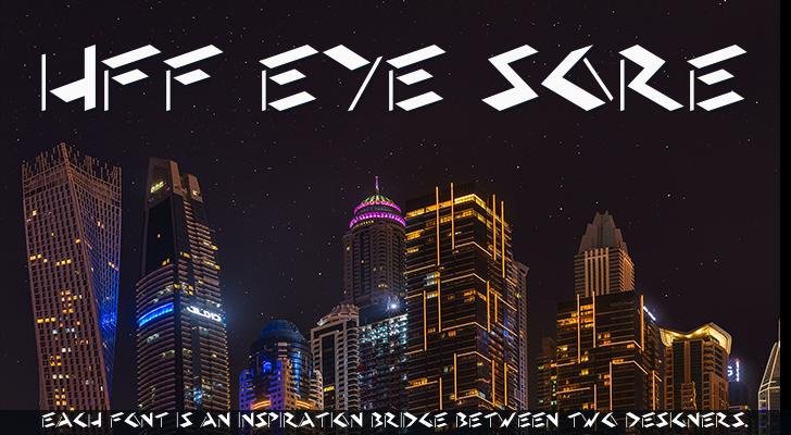 HFF Eye Sore is based on Grab Bag, from page 30 of the "Grunge Alphabets: 100 Complete Fonts" by Dan X. Solo, first published by Dover Publications in 1998. Grab Bag is also featured on page 82 of "The Solotype Catalog of 4,147 Display Typefaces."