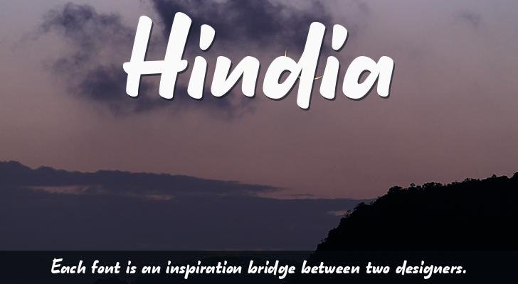 =========================================================== Commercial Use? Myfontshttps://www.myfonts.com/fonts/lafontype/hindia/ Fontspringhttps://www.fontspring.com/fonts/lafontype/hindia =========================================================== ----------IMPORTANT NOTE---------- This version is absolutely free for personal, educational, non-profit, or charitable use. For commercial use, available on Font Marketplace contact:anugrahtaccidix@gmail.com Thanks for being supportive instagram.com/lafontype behance.net/lafontype