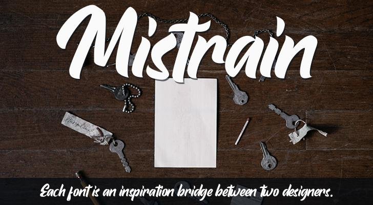 NOTE:This demo font is for PERSONAL USE ONLY! But any donation are very appreciated. Paypal account for donation :https://www.paypal.me/aditrezki If you need an extended license or corporate license, please contact us at rezkia8f4@gmail.com Please visit our store for more great fonts : https://www.creativefabrica.com/ref/236402/ And follow my instagram or update :@adityarezki12 or follow behance :https://www.behance.net/EmbunStudio ---------------------------------------------------------- Mistrain is modern hand lettering typeface, elegant and classy for your every project such as, business card, poster, brochure, wedding invitation, web header, logo design and many more with easy install and use. Link for Premium download : https://lnkd.in/ghYC5C6 Thank you