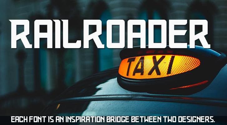 “Railroader” is based on “wild bull” by “Bill Walker” (http://fontstruct.com/fontstructors/walkerws), which is based on “nxtstp” by “undercurrent” (http://fontstruct.com/fontstructors/undercurrent)