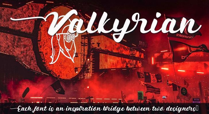 Valkyrian is a demo font. Just +1 and +2 for beautiful start and ending glyph.
